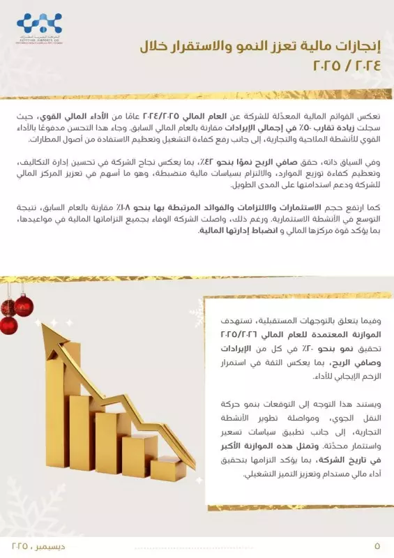 وأرجعت الشركة هذا التحسن إلى تعظيم الاستفادة من أصول المطارات، ورفع كفاءة التشغيل، إلى جانب الأداء الإيجابى للأنشطة التجارية، ما انعكس بصورة مباشرة على النتائج المالية.