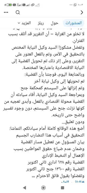 وأضاف وهبة أن السيد وكيل النيابة المختص تفضل مشكورًا بمتابعة الأمر، وتم بالفعل العثور على التقرير المفقود، وعلى إثر ذلك تقرر تحويل القضية إلى النيابة الاقتصادية باعتبارها جهة الاختصاص.
