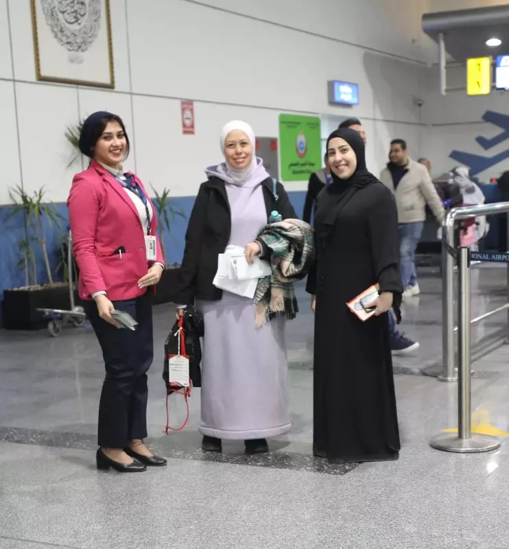 وتولى فريق من العلاقات العامة والإعلام بشركة ميناء القاهرة الجوي بتوديع المعتمرين وإنهاء كافة إجراءات السفر الخاصة بهم إلى جانب تنفيذ التغطية الإعلامية اللازمة.