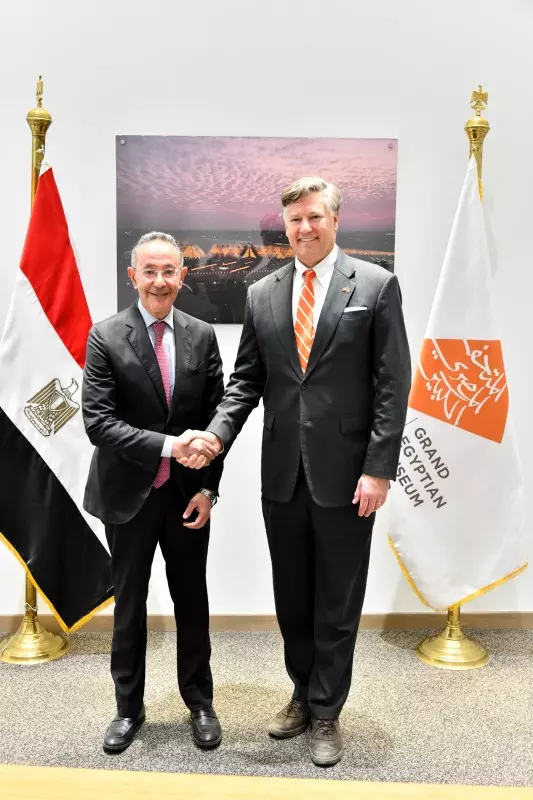 استقبل المتحف المصري الكبير، السيد كريستوفر لاندو نائب وزير الخارجية الأمريكي، والسيد فرخ حامد الدين شريف زاده نائب وزير خارجية جمهورية طاجيكستان والوفود المرافقة لهما، وذلك خلال زيارتهما الرسمية إلى مصر.