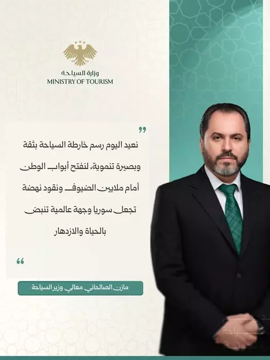 أكد مازن الصالحاني ، وزير السياحة السورى ، ارتفاع أعداد السياح العرب والأجانب القادمين إلى سوريا منذ التحرير وحتى نهاية تشرين الثاني 2025 بنسبة 80%، مقارنة بالفترة نفسها من 2024، ما يعكس عودة النشاط السياحي الحقيقي بعد التحرير، فيما ارتفع مجمل الزوار والسياح من سوريين وعرب وأجانب بنسبة 18% في 2025 مقارنة مع العام 2024 ليبلغ 3,56 مليونا ارتفاعا من 3,011 مليونا.