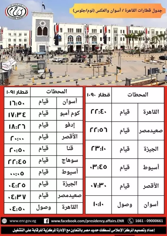 تطبيق الهاتف المحمول (Egyptian National Railways) المتاح عبر متجري Google Play وApp Store