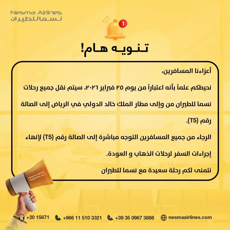 نقل رحلات نسما للطيران إلى صالة T5 بمطار الرياض اعتباراً من اليوم 25 فبراير 2026