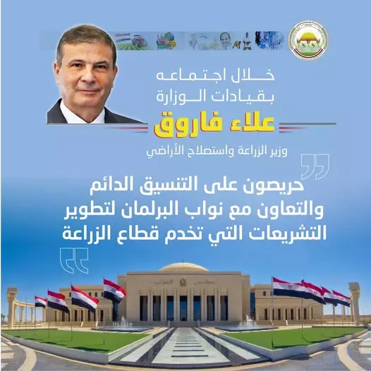 وأوضح الوزير أن الوزارة تستهدف طفرة في زيادة الصادرات الزراعية لفتح أسواق جديدة وجلب العملة الصعبة، مشيراً إلى أهمية التنسيق الدائم والتعاون مع نواب البرلمان لتطوير التشريعات التي تخدم قطاع الزراعة.