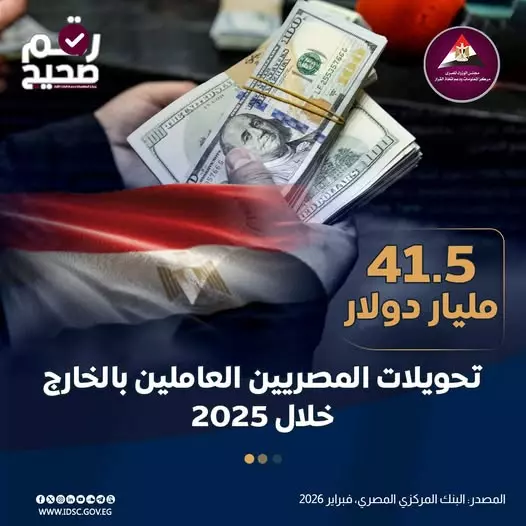 وعلى المستوى الشهري، شهد شهر ديسمبر 2025 تسجيل أعلى تدفق شهري على الإطلاق، حيث ارتفعت التحويلات بنسبة 24% لتصل إلى نحو 4 مليارات دولار، مقارنة بـ3.2 مليار دولار في ديسمبر 2024.
