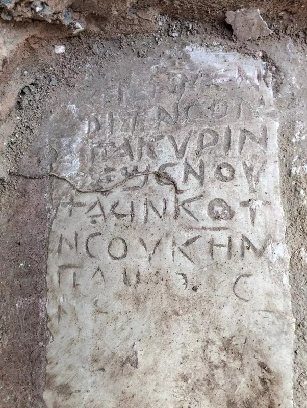 ومن أبرز المكتشفات أيضًا قطعة مستطيلة من الحجر الجيري عُثر عليها عند مدخل إحدى الحجرات، منقوش عليها نص باللغة القبطية يُرجح أنه شاهد قبر، حيث تشير الترجمة المبدئية إلى نياحة شخص يُدعى “أبا كير بن شنودة”، وهو ما يؤكد استمرار النشاط البشري بالموقع خلال فترات ازدهار الحياة الرهبانية بالمنطقة.