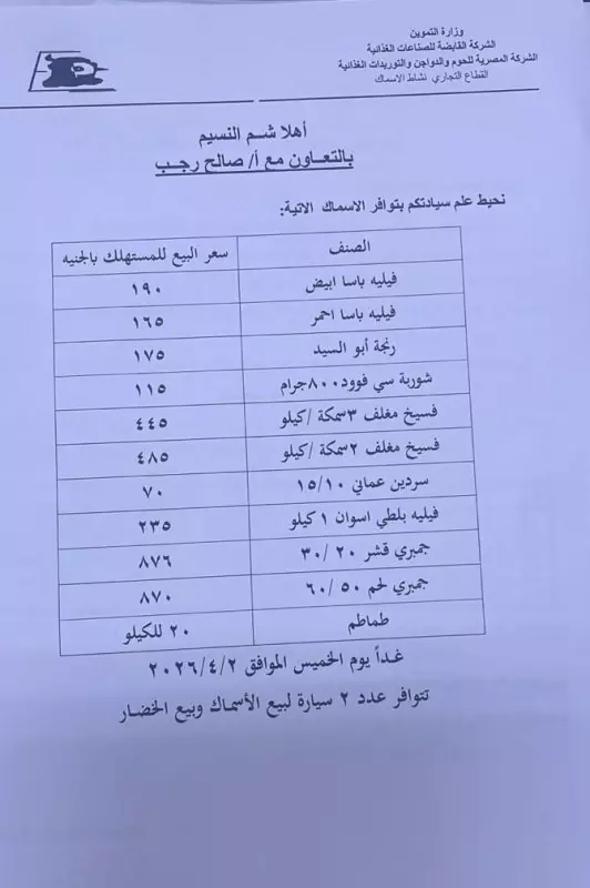 وفي إطار الاستعداد لموسم الأعياد وشم النسيم، أعلن رجب عن إدخال أصناف جديدة ومميزة داخل المعرض، تشمل الطماطم الفاخرة بسعر 20 جنيهًا للكيلو، إلى جانب الأسماك المغلفة، والفسيخ، والرنجة (يؤدين)، والجمبري الجامبو، بالإضافة إلى السمان والبط، بما يلبي احتياجات الصحفيين خلال هذه المناسبة.