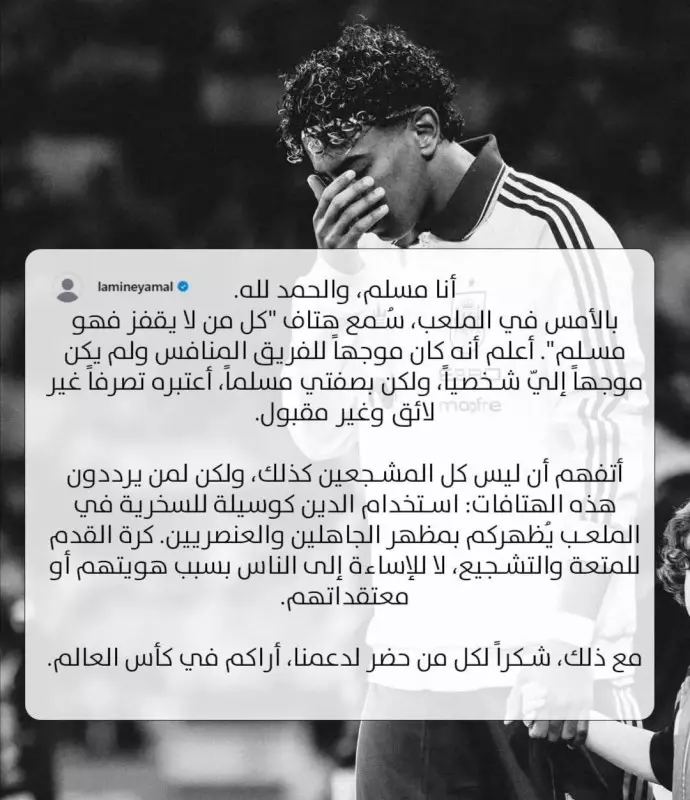 – “كرة القدم للمتعة، لا لخلطها بقضايا اجتماعية أو سياسية تشوه روح الرياضة، وإذا كانت إسبانيا تلعب، فعلينا أن نحترم الآخرين وندعم فريقنا دون تجاوزات.