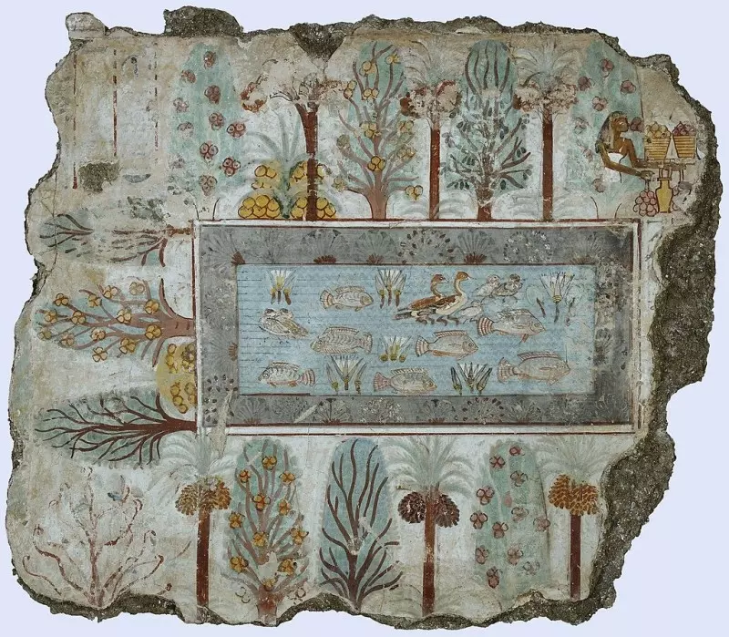 اهتم المصري القديم بالحدائق والنباتات بشكل لافت، وخلّد ذلك في نقوش المقابر، مثل مقبرة الكاتب «نب أمون» التي تصور بحيرة تتوسط حديقة مليئة بأزهار اللوتس والأسماك، تحيط بها أشجار الجميز والنخيل والتين.