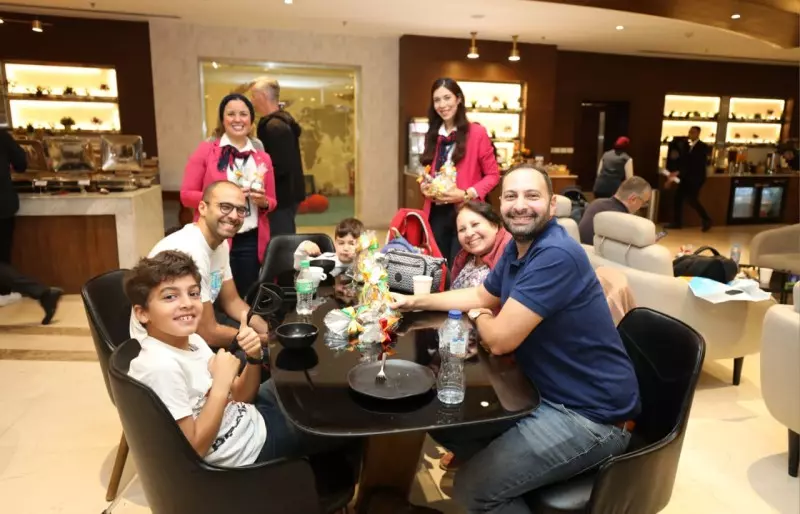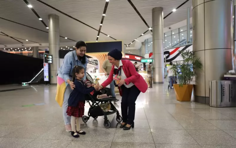 حيث قام فريق من العلاقات العامة والإعلام بتهنئة الركاب ومشاركتهم مظاهر الإحتفال وتوزيع الورود و الشيكولاتة عليهم وتوثيق الحدث بالصور ومقاطع الفيديو التى توثق أجواء الفرحة والسعادة والبهجة لدي الركاب داخل مطار القاهرة الدولي
