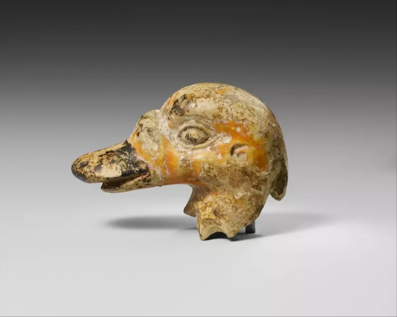 وأضاف أن من بين القطع أيضًا جزءًا من إناء مزخرف يصور طفلًا وسط نباتات المستنقعات، يُرجح ارتباطه بحورس الطفل، وقطعة فخارية على شكل بطة من العصر البطلمي، وزخرفة خزفية تحمل رأس الإله اليوناني ديونيسوس.