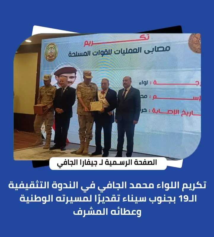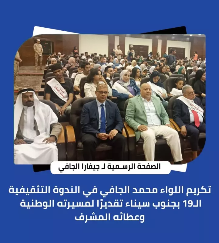 تكريم اللواء ” محمد الجافي” في الندوة التثقيفية الــ 19 بجنوب سيناء تقديرًا لمسيرته الوطنية وعطائه المشرف