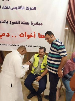 نظمت مساء امس أمانة الحزب بمحافظة المنيا تحت رعاية النائب عمرو غلاب أمين الحزب بالمحافظة بالتعاون مع المركز الإقليمي لنقل الدم بالمنيا حملة للتبرع بالدم تحت شعار ” احنا اخوات .. دمى هو دمك ” وذلك بفندق إيتاب من الساعة الرابعة عصرا حتي التاسعة مساء والتى شهدت اقبالا من اعضاء وكوادر الحزب . وأوضح غلاب امين الحزب بالمحافظة أن المبادرة تم تنفيذها من خلال أمانة المهنيين بالحزب برئاسة الدكتور على عبد السلام ، وجاءت لحاجة العديد من المرضي لكميات من الدم وخاصة الأطفال بمعهد الأورام والمستشفيات عامة وتعبيرًا عن المشاركة الفعالة للحزب في جميع الأحداث التى يمر بها الوطن ، مؤكدا أن هذا واجب على كل مصري أن يشارك بالتبرع بالدم لتخفيف اوجاع المرضى والمصابين فى هذا الوقت .