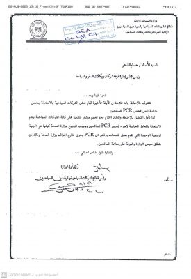 السياحة تحذر  الشركات من تعاملها مع معامل طبية خاصة لعمل مسحة كورونا لسائحيها وتلزمها التعامل مع معامل وزارة الصحة