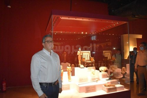 افتتح امس وزير السياحه والاثار فاترينه عرض تضم 10 قطع من كنوز الملك توت عنخ امون بمتحف الغردقة