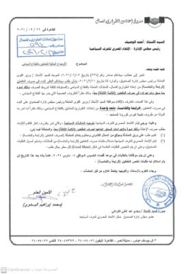 تلقى أحمد الوصيف ، رئيس إتحاد الغرف السياحية خطاباً من محمد إبراهيم البدوى ، الأمين العام لصندوق إعانات الطوارئ للعمال التابع لوزارة القوى العاملة والتدريب ،يرد فيه على خطابه المرسل من الإتحاد المؤرخ فى 9 فبراير الجارى والذى يطالب فبه رئيس الإتحاد بالعمل والتعجيل بصرف الدفعات المتأخرة ” الرابعة والخامسة ” المخصصة للعاملين بالقطاعغ السياحى المتضررين من تداعيات فيروس كورونا ، فى ظل تعاظم الأزمات السياحبة خاصة مع الموجة الثانية من كورونا وتحوره وإغلاق العديد من الدول المصدر للسياحة المصرية حدودها ومنعت مواطنيها من مغادرة البلاد .