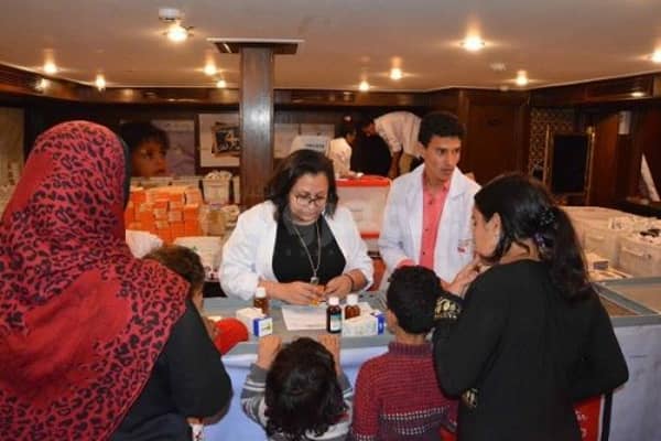 من جانبها أشارت دكتورة شيرين ابوحسين نائب رئيس المستشفى العائم ، إلى أنه يوجد 14 عيادة في مختلف التخصصات الطبية، منها أطفال عامة وسكر وغدد صماء وصدر وحساسية وتغذية ورمد وانف واذن وحنجرة وسمعيات وعظام واطراف صناعية وجلدية وصحة انجابية واحتياجات خاصة وتخاطب وقلب وأشعة، بالإضافة إلى تقديم الدواء بالمجان، وإجراء التحاليل الطبية، مشيرة إلى أن العمل بالمستشفى العائم تستمر لمدة اسبوع وتبدأ من الساعة التاسعة صباحا، وحتى الثامنة مساءا.