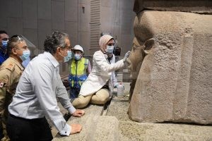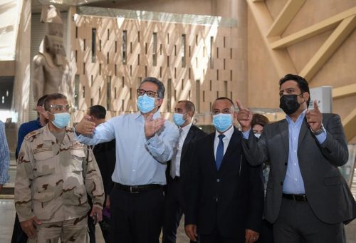 قام الدكتور خالد العناني وزير السياحة والآثار، صباح اليوم الاثنين، بجولة إلى المتحف المصري الكبير بميدان الرماية لتفقد وضع اللمسات النهائية للعرض المتحفي الخاص بالبهو والدرج العظيم وقاعتي الملك توت عنخ آمون بالمتحف، رافقه خلالها الدكتور مصطفى وزيري الأمين العام للمجلس الأعلى للآثار، واللواء عاطف مفتاح المشرف العام على مشروع المتحف والمنطقة المحيطة، والدكتور الطيب عباس مساعد الوزير للشئون الأثرية بالمتحف، والاستشاري الهندسي للمشروع، والمقاول، وعدد من قيادات المتحف.
