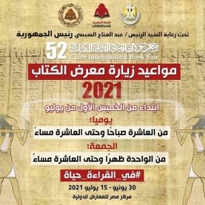 أعلنت وزارة الثقافة تفاصيل كاملة للنسخة الـ”52″ لمعرض القاهرة الدولي للكتاب في الفترة من 30 يونيو حتى 15 يوليو 2021 بمركز مصر للمعارض والمؤتمرات الدولية بالتجمع الخامس.