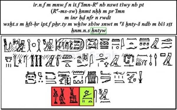 والأجمل من كل ذلك أنه في مقالة دورية (Memnonia XIX) لسنة 2009 صفحة 134 و 135 والخاصة بنقوش داخل جامع أبو الحجاج الأقصري أن المصري القديم ذكر صراحةً في نص الكتابة المعمَّاه (Cryptography) العبارة التالية :