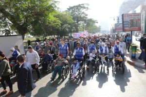 قاد محافظ المنيا، مسيرة شبابية بمشاركة ذوي الاعاقة، من أمام البنك الأهلي وحتى مبنى ديوان عام المحافظة، معرباً عن سعادته للمشاركة في تلك الفعاليات التي ترسم البهجة على وجه ذوي الإعاقة، بمشاركة الجمعيات الاهلية والجهات المعنية.