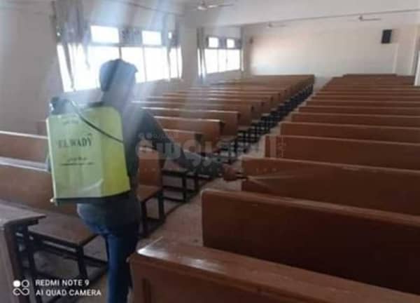 أعلنت كليات جامعة المنيا، الانتهاء من استعدادات امتحانات الفصل الدراسي الأول، 2021/2022، بتطهير وتعقيم المدرجات، ومناطق الامتحانات، وقاعات ومكاتب الإدارة، من وباء كورونا المستجد.