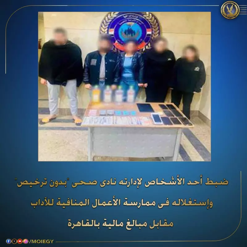 فى إطار جهود مكافحة الجرائم المنافية للآداب العامة.. فقد أكدت معلومات وتحريات الإدارة العامة لحماية الآداب بقطاع الشرطة المتخصصة قيام (أحد الأشخاص ، له معلومات جنائية) بإدارة نادى صحى “بدون ترخيص” كائن بدائرة قسم شرطة التجمع الأول بالقاهرة وإستغلاله فى ممارسة الأعمال المنافية للآداب العامة لراغبى المتعة مقابل مبالغ مالية.