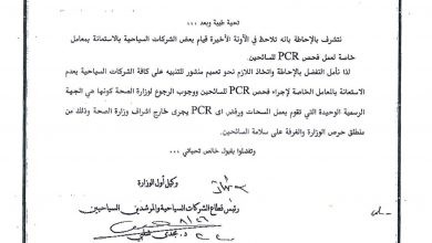 حذرت وزارة السياحة والآثار، كافة الشركات السياحية من توجيه المسافرين لعمل مسحة pcr في المعامل الخاصة، مطالبة بإجراء التحليل في…