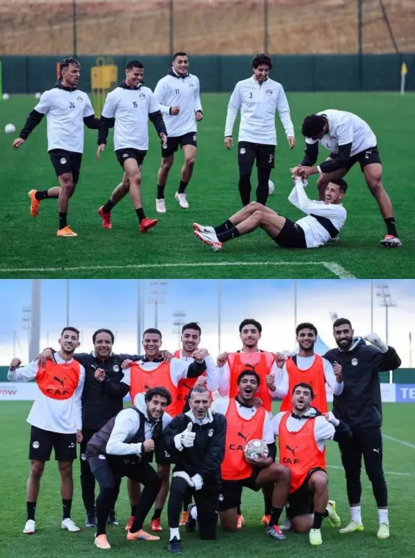 -أجواء_مرحة في معسكر منتخب مصر في أول مران له استعداداً لمباراة أنجولا بعد حجز بطاقة التأهل لدور القادم بأمم إفريقيا. …