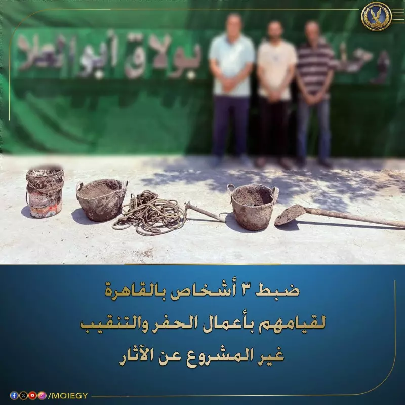 تمكنت الأجهزة الأمنية بمديرية أمن القاهرة من ضبط ثلاثة أشخاص أثناء قيامهم بالتنقيب غير المشروع عن الآثار داخل أحد العقارات…