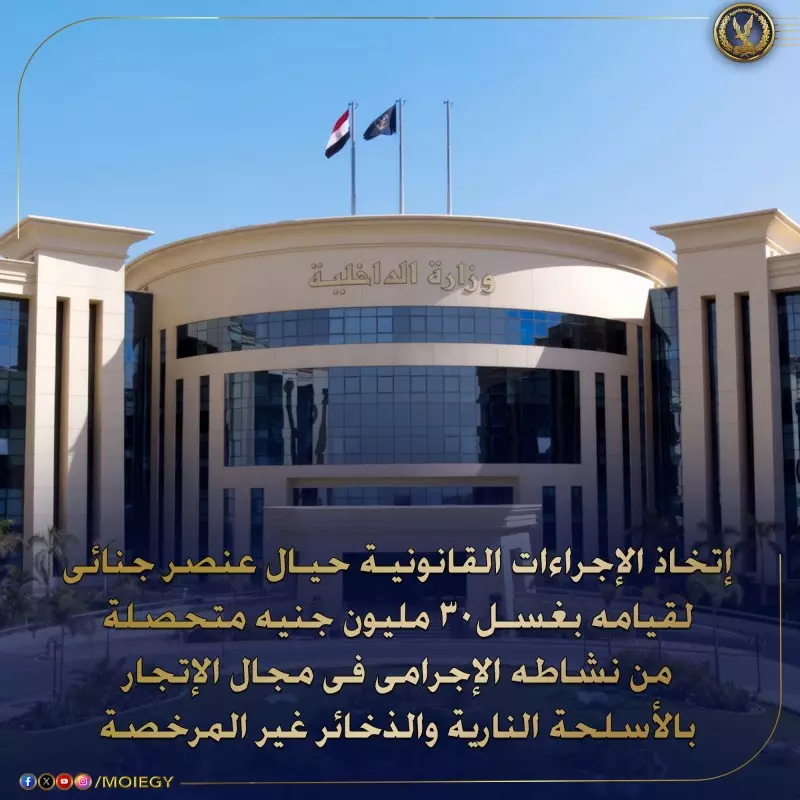 اضطلع قطاع مكافحة المخدرات والأسلحة والذخائر غير المرخصة، بالتنسيق مع أجهزة وزارة الداخلية المعنية، باتخاذ الإجراءات القانونية حيال أحد العناصر…