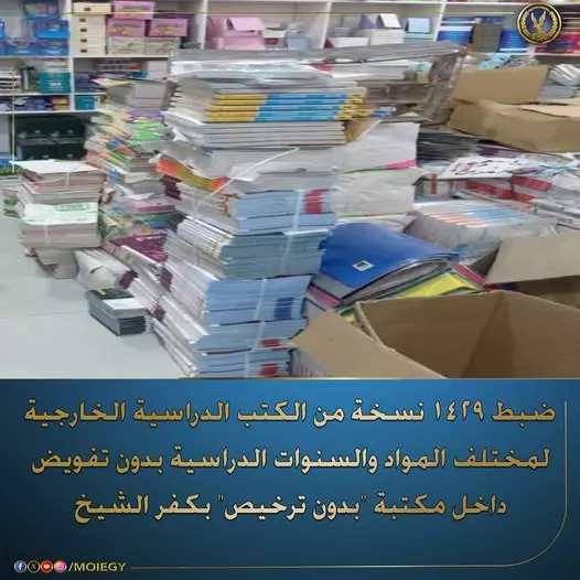 ضبط مكتبة بكفر الشيخ تبيع كتبًا دراسية بدون ترخيص وتفويض رسمي
