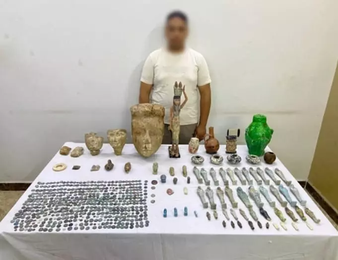 القبض على تاجر آثار بحوزته 577 قطعة أثرية من العصور القديمة بالمنيا