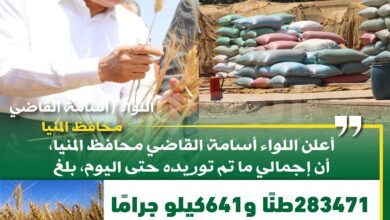 محافظ المنيا: شون وصوامع المحافظة تواصل استقبال القمح وتوريد 283 ألف طن منذ بدء الموسم