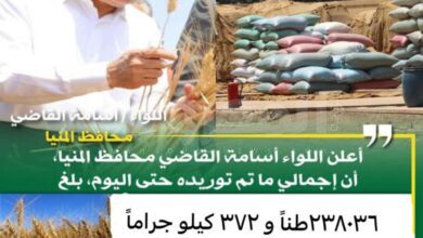 جمال علم الدين أكد اللواء أسامة القاضي، محافظ المنيا، استمرار استقبال الشون والصوامع لمحصول القمح لموسم حصاد 2024، حيث تم…