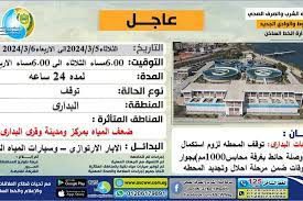 ضعف المياه لمدة 24 ساعة بمركز البداري في المنيا