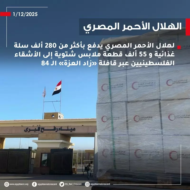الهلال الأحمر المصري يرسل أكثر من 280 ألف سلة غذائية و55 ألف قطعة ملابس شتوية إلى غزة