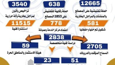 مصلحة الرقابة الصناعية خلال الـ 10 أشهر الأولى من العام الجاري : إجراء 12665 حملة تفتيشية على المصانع و إعداد 2838 دراسة فنية