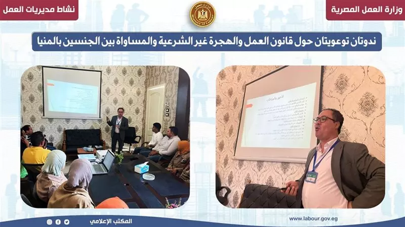 “عمل المنيا” تنظم ندوتين للتوعية بقانون العمل والهجرة غير الشرعية
