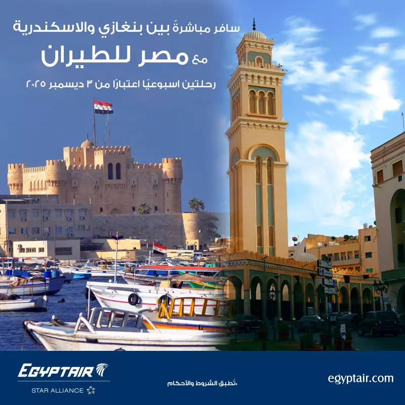 بتخفيض يصل لـ 60 % ..مصر للطيران تطلق عرضًا استثنائيًا على رحلاتها المباشرة بين بنغازي والإسكندرية حتى 6 ديسمبر
