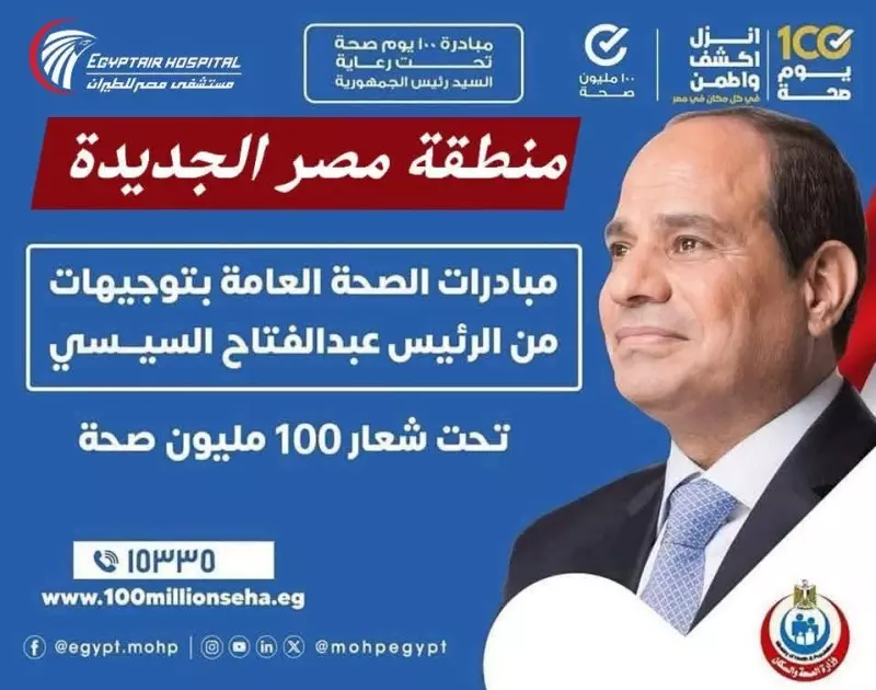 دعمًا لتوجيهات الرئيس السيسي ومبادراته الوطنية : مستشفى مصر للطيران تستضيف مبادرة “100 مليون صحة” للكشف المبكر عن الأمراض والأورام بالمجان