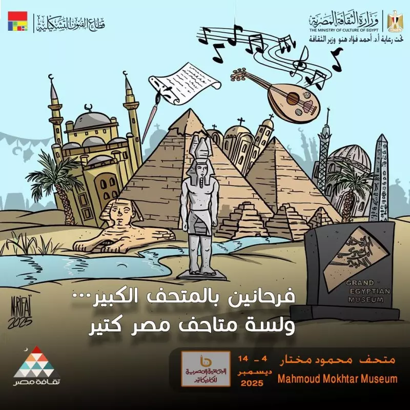 “فرحانين بالمتحف الكبير”… معرض دولي للكاريكاتير في متحف مختار يربط الجمهور بالمتاحف من خلال فن سريع التأثير