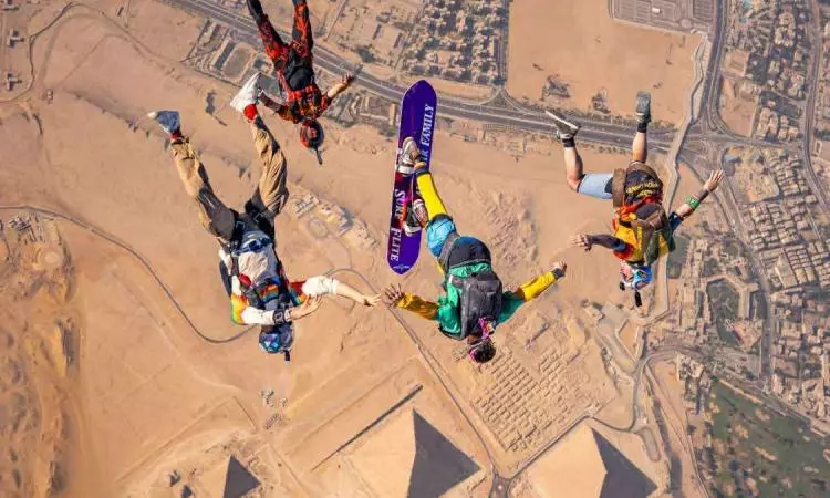 بالتزامن مع الاحتفال بافتتاح المتحف الكبير.. 1350 قفزة على سفح الأهرامات