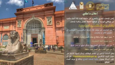 يُعلن المتحف المصري بالتحرير عن حاجته لشغل عدد أربعة وظائف إمناء مكتبة من موظفي وزارة السياحة والآثار وهيئاتها التابعة وأعلن…